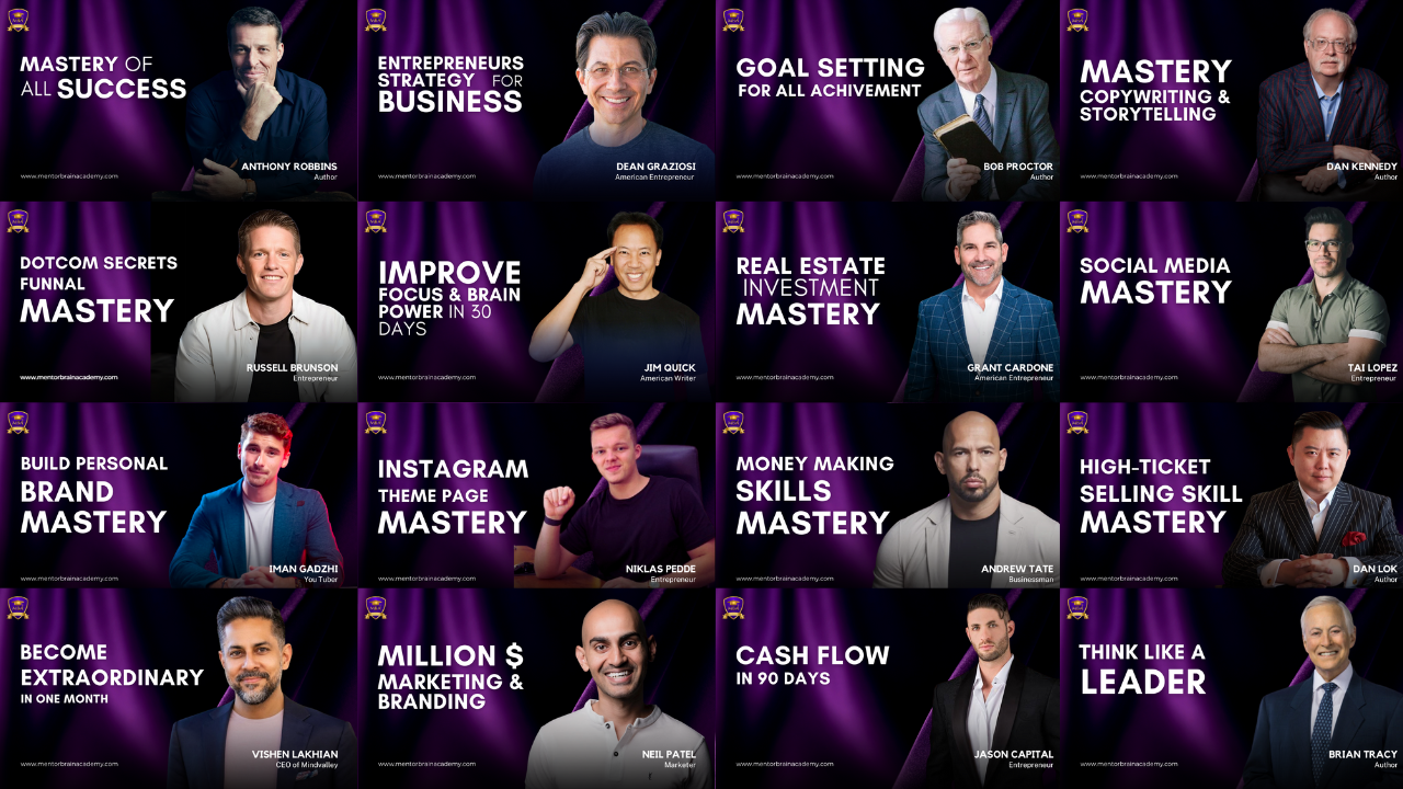 Our courses come from renowned entrepreneurs like Tony Robbins, Grant Cardone, Tai Lopez, Andrew Tate, Iman Gadzhi, Niklas Pedde, Russell Brunson, and 100’s of top entrepreneurs.